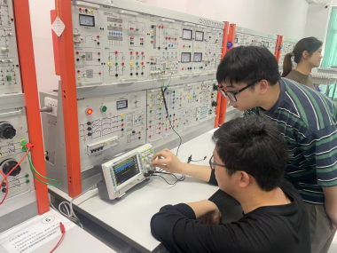 在姜新正副教授带领下,调研小组实地参观电机实验室、电力电子实验室,围绕实验台做了详细的介绍,实地操作电机平台、电力电子实验台,演示各项功能,向调研小组展示了电力电子实验、电机控制等实验项目。