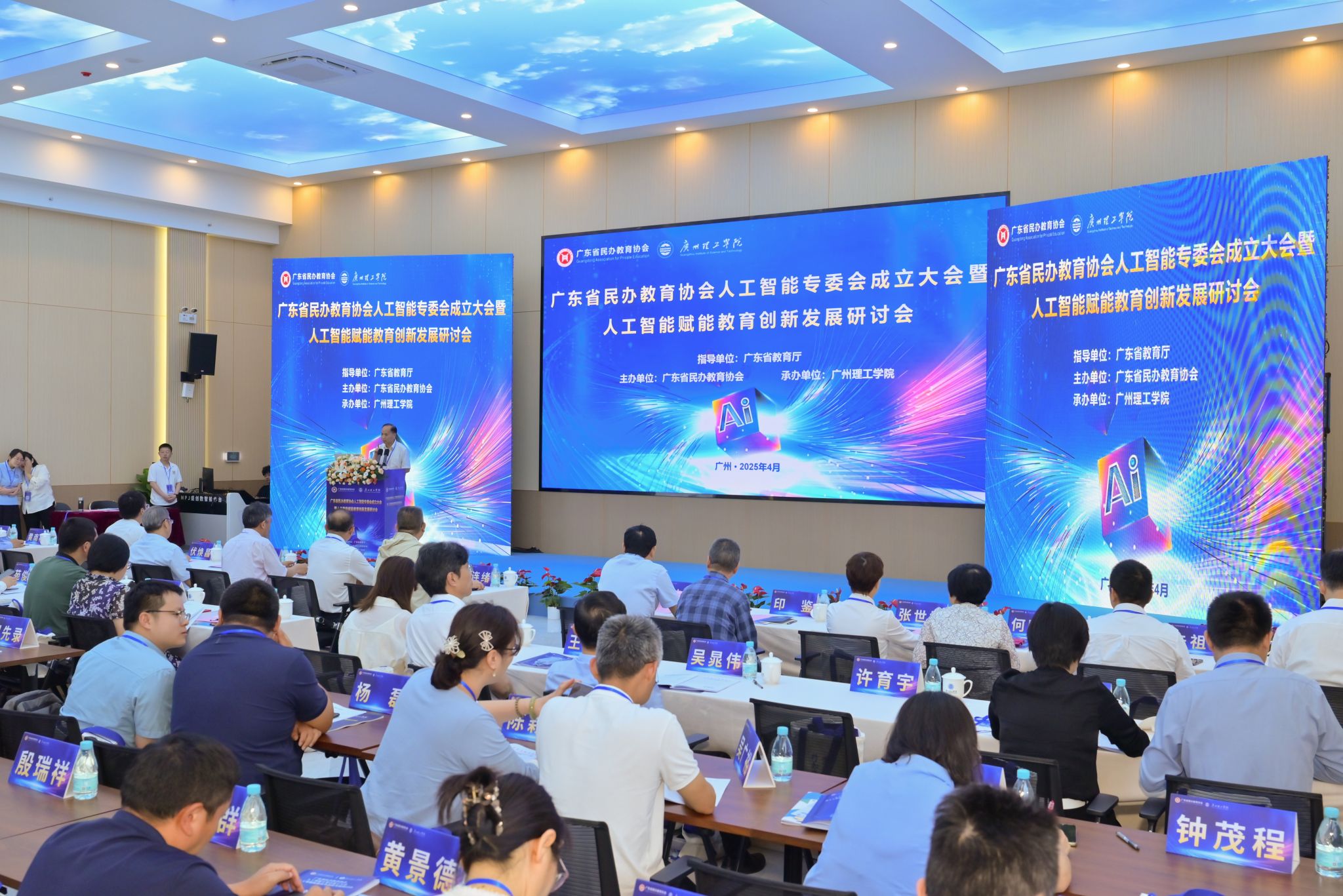 4月24-25日,广东省民办教育协会人工智能专委会预备会议、成立大会暨人工智能赋能教育创新发展研讨会在广州理工学院举行。电气学院副院长苑俊英、陈深进和院长助理张鉴新三位老师出席会议。