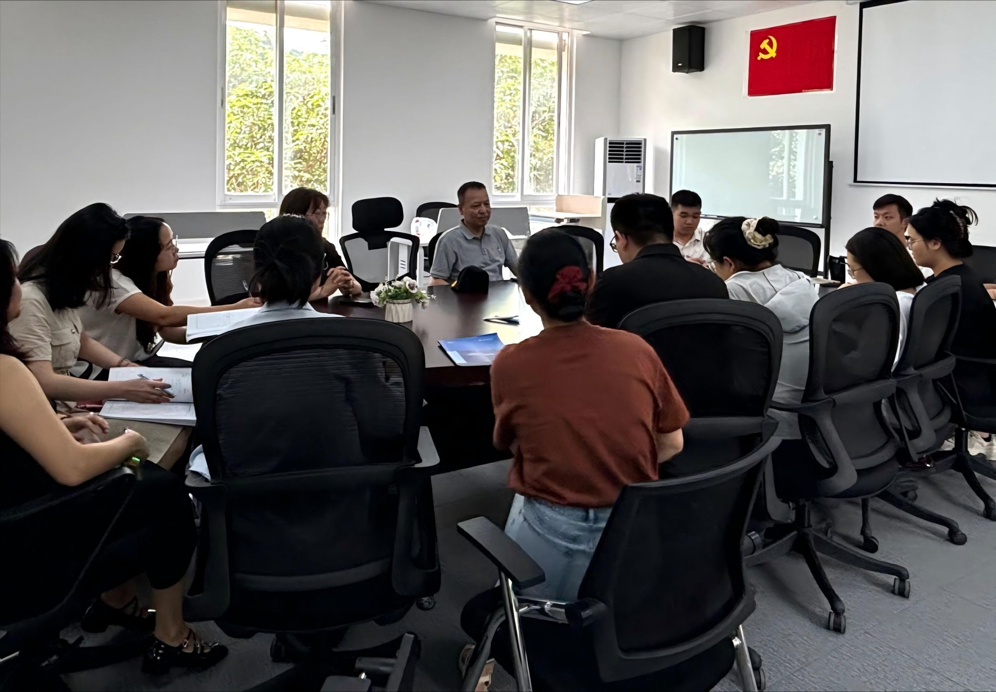 自由交流环节气氛热烈,与会人员围绕专业建设积极建言献策。辅导员代表纷纷表示将主动参与学院组织的无人机技术培训,通过系统学习行业知识和实操技能,切实提升指导学生专业实践的能力。现场多位老师结合产业需求,对课程体系优化提出具体建议,并就校企联合开展技术研发、共建实训项目等合作模式进行了深入探讨。苑院长在总结中表示,将梳理座谈会意见建议,推动教育链、人才链与产业链深度对接。