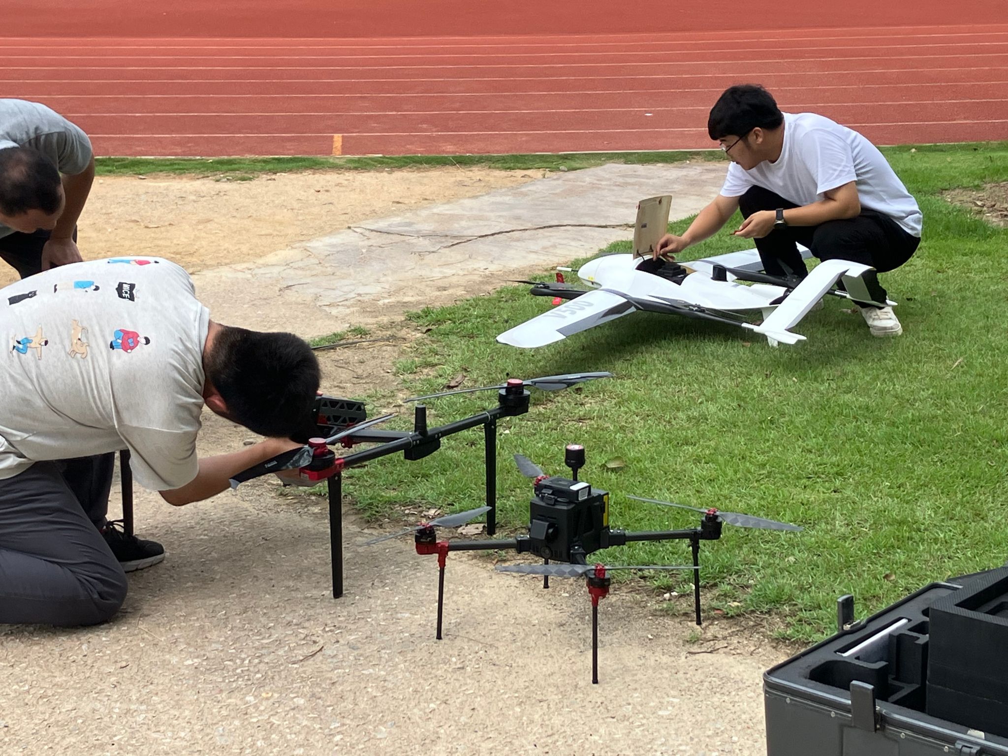 7月3日上午在suncitygroup太阳集团东操场,suncitygroup太阳集团邀请到深圳飞马机器人股份有限公司派出华南区销售经理曾庆管、华南区技术主管施武斌来我校开展无人机技术展示活动。同时,学院邀请到了北京科技大学天津学院殷华教授,现场为青年教师和学生进行专项指导与无人机操作培训。