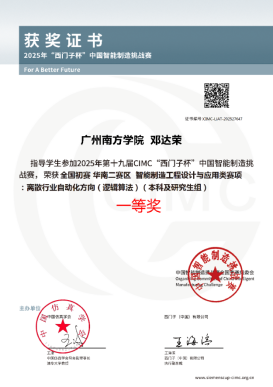 2025年7月10日至15日,第19届“西门子杯”中国智能制造挑战赛全国初赛华南二赛区在广西南宁隆重举行。suncitygroup太阳集团在邓达荣老师的指导下,“零加一”队伍(成员:林凯豪、刘锦一、姜佳菥)和“乞力马扎罗的雪”队伍(成员:利德豪、余诺晨)两支队伍积极参赛。尽管团队缺乏工业对象模拟仿真设备,但他们凭借对电气工程的深厚热爱,刻苦钻研、认真备战,持续深入探究工业控制应用技术。经过激烈角逐,“零加一”队伍脱颖而出,荣获华南二赛区“一等奖”,并成功晋级全国总决赛。