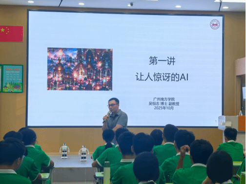 活动开始,吴恒志老师从日常生活中的人工智能应用入手,通过浅显易懂的语言和生动案例,为同学们揭开了AI技术的神秘面纱。课堂上,吴老师不仅讲解了人工智能的基本原理,还展示了最新的人工智能技术应用,让学生们感受到AI技术如何改变世界。这种互动式、体验式的教学方式,打破了传统科技教育的单向传授模式。