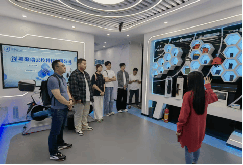 聚瑞云控人力资源总监熊芳、技术经理王新联对我校师生的到访表示热烈欢迎,并详细介绍了公司发展情况。作为一家成立于2019年的国家高新技术企业和专精特新小巨人企业,聚瑞云控以北斗技术为基石,深耕物联网领域,已成为行业领先的解决方案服务商。技术经理向师生们展示了公司在北斗GPS应用、物联网技术服务、汽车金融、智慧矿山及康养机器人等领域的创新成果。