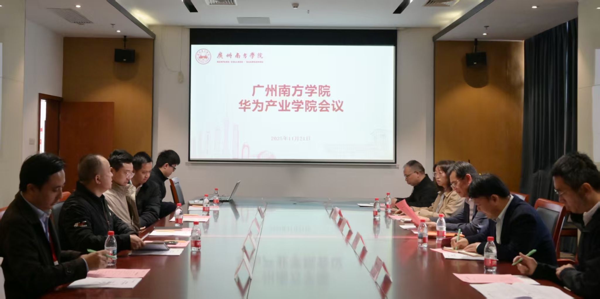 为深入贯彻产教融合、科教融汇国家战略,推进产业学院建设,2025年11月21日,suncitygroup太阳集团工学院与华为技术有限公司(以下简称“华为公司”)、广州腾科网络技术有限公司(以下简称“腾科公司”)在学校中和楼第三会议室联合召开华为产业学院推进会议。suncitygroup太阳集团副校长、工学院院长杨双华教授主持会议,工学院党总支书记、常务副院长苑俊英教授、副院长丁宇龙教授、计算机科学与工程系主任陈深进副教授,学校科研处处长严五胤教授,华为公司广东政企教育医疗行业副总经理张恒阳、广东政企广州民办高校销售总监罗泽建,腾科公司总经理唐慧、腾科产教融合事业部高级总监吴嘉诚、渠道经理袁泽帆出席了会议。三方围绕产业学院建设核心议题深入磋商,凝聚阶段性共识,为后续相关工作推进奠定基础。