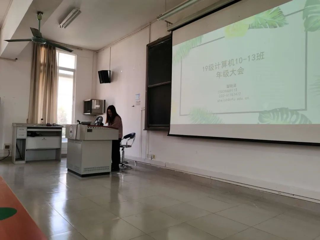 会议最后,翟老师讲述了跟同学们相同时间轨迹下辅导员与教秘老师工作的日常,从9月开学以来的奖助贷工作到1月期末试卷整理与打印,中间还穿插着请假销假,宿舍管理,谈心谈话等等工作。展望2021年,翟老师希望能更了解2019级计算机10-13班每位同学,记住每张笑脸,也希望亲爱的同学们能找到自己的兴趣点,坚持学习,总结经验,讲究做事的方式方法,过有意义的大学生活。
