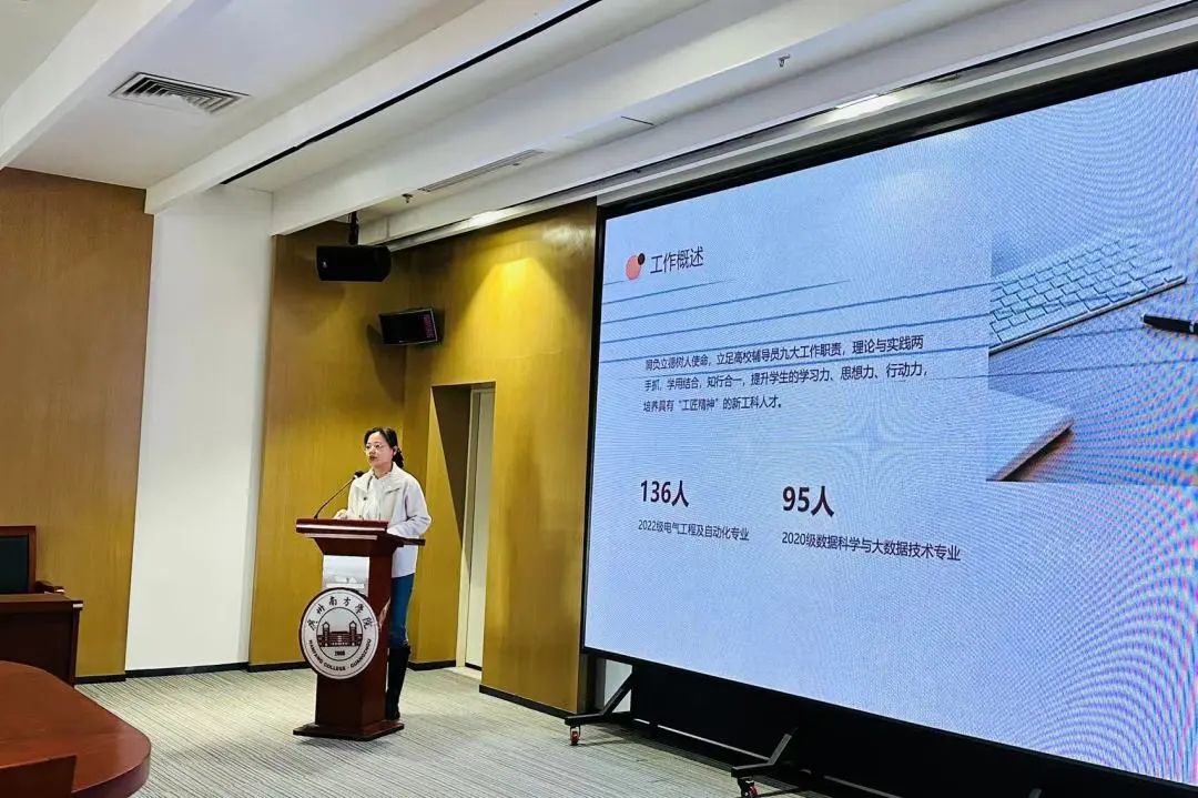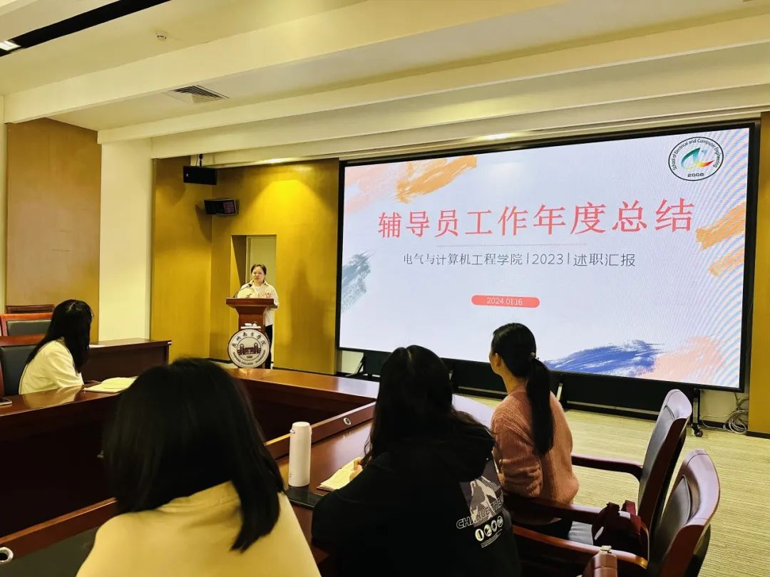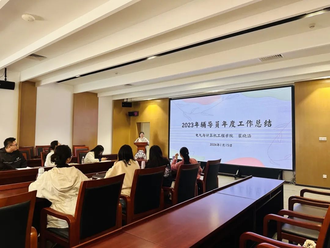 辅导员年度总结暮雨朝云年暗换,长沟流月去无声。不觉间2023年辅导员工作已经接近尾声,为切实加强我院辅导员队伍专业化职业化建设,激励和促进辅导员不断提高政治素质和业务水平,认真履行岗位职责,提升思想政治教育工作质量,电气学院于2024年1月16日在新综第一会议室召开了2023年度辅导员工作总结会议。本次会议由电气学院党总支副书记兼学工办主任唐玉婷老师主持,电气学院全体辅导员参加。