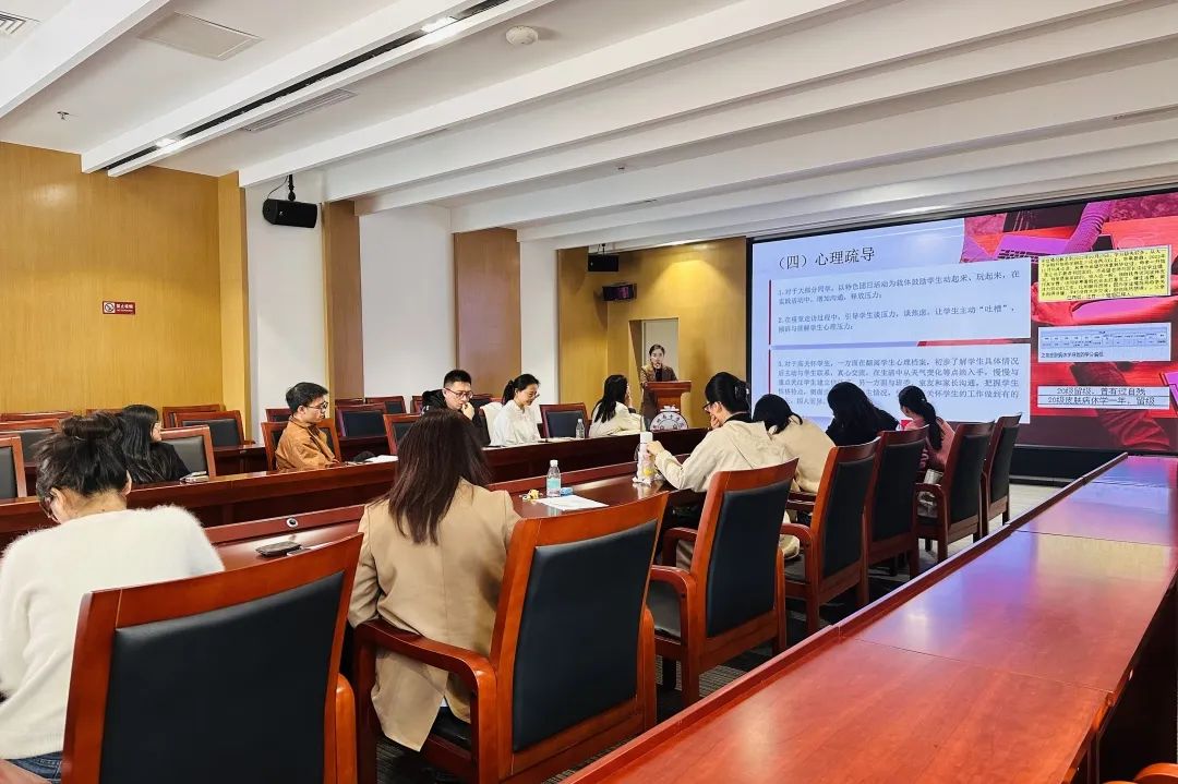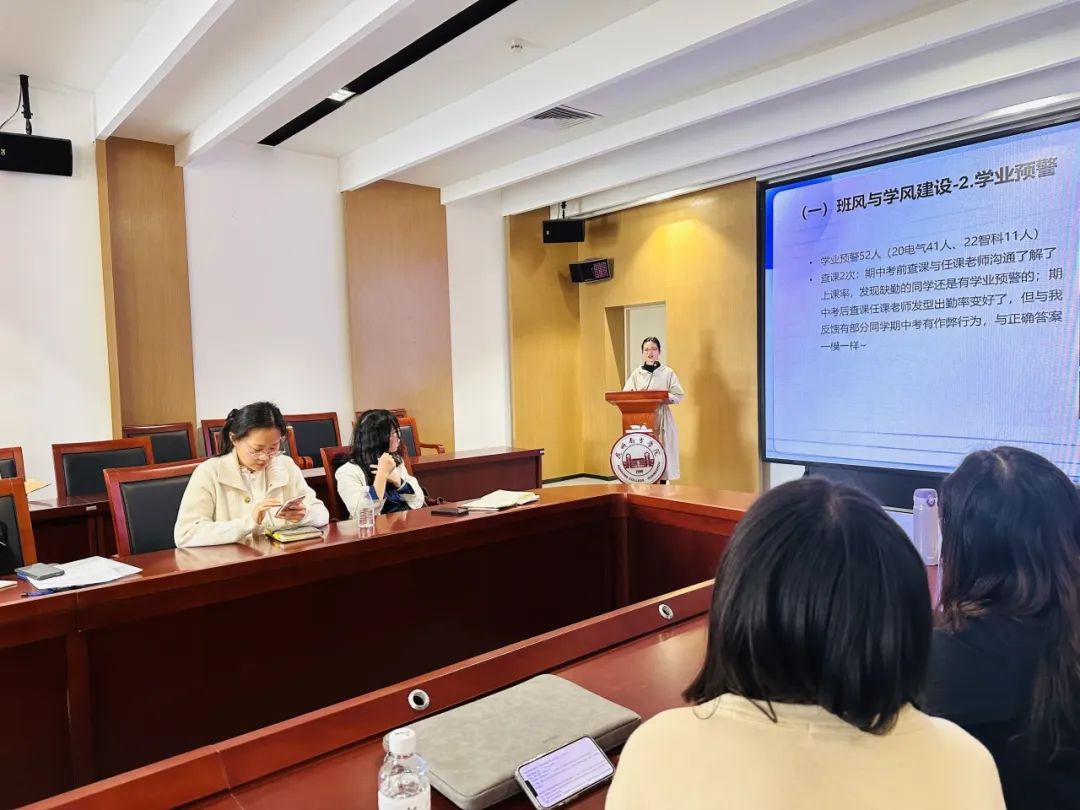 最后,唐玉婷老师对本次会议进行了总结。首先对辅导员们在过去一年的工作成就表示了肯定,感谢他们在学院工作中的辛勤付出。与此同时,进一步明确了下学期学生工作的重点和思路,统一思想凝聚共识。新的一年,希望全体辅导员不忘初心与使命,落实好立德树人这一根本任务,以更积极的心态和饱满的热情扎实推进学生工作,力求在平凡的岗位上再创佳绩。