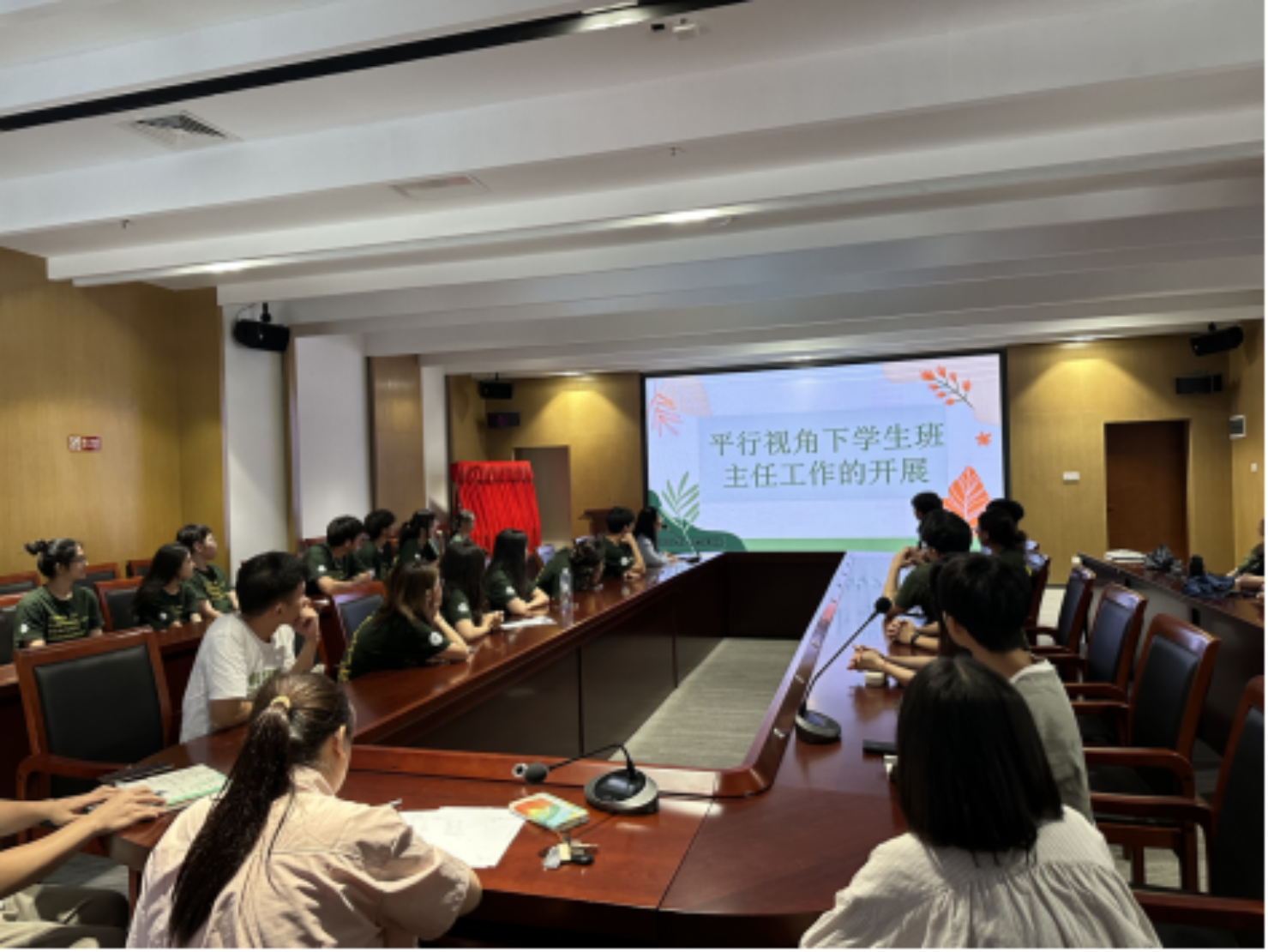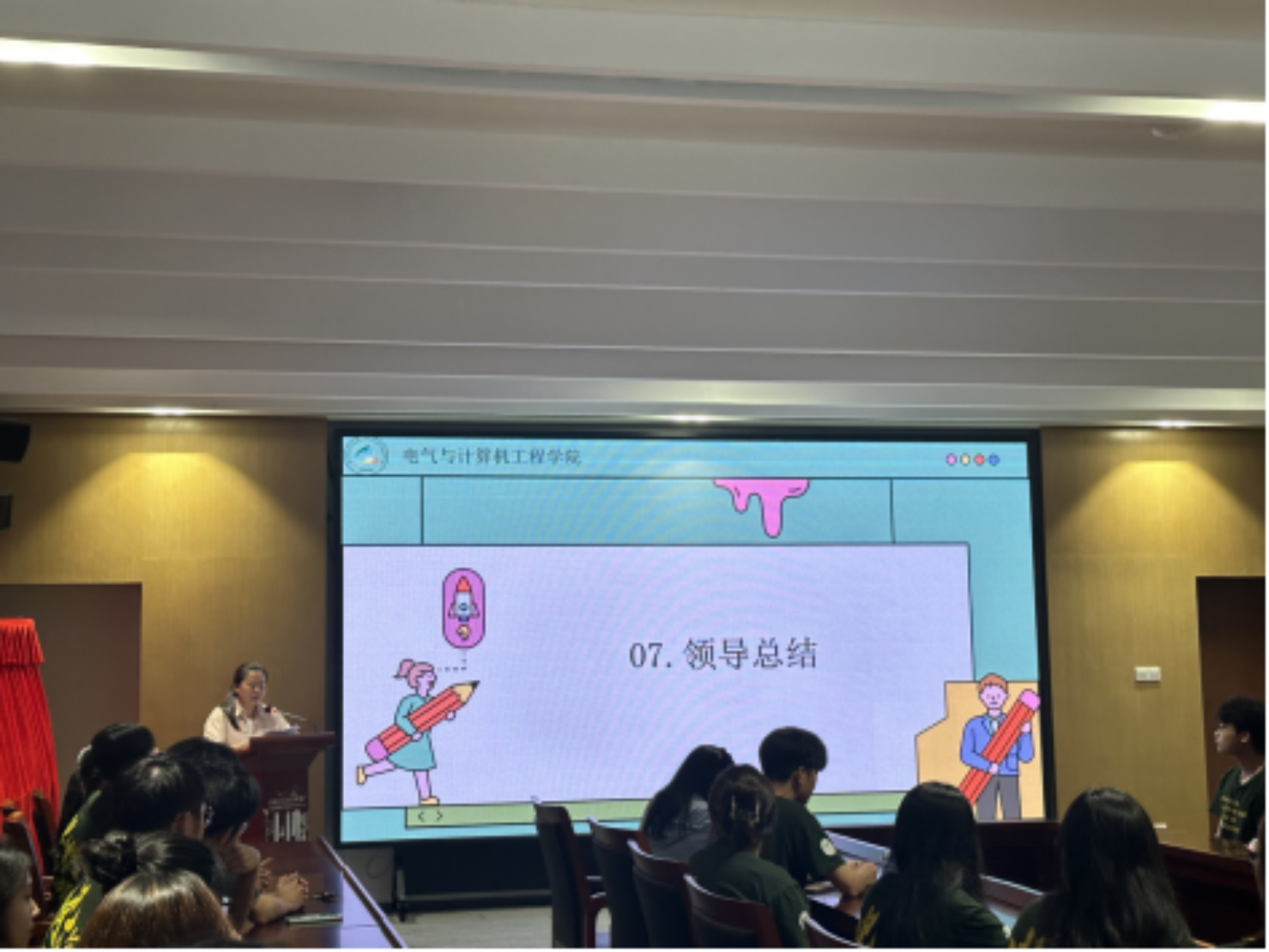最后,唐玉婷老师对本次的会议进行总结,随着学院的蓬勃发展,希望下一届2024级朋辈辅导员可以紧跟2023级学生班主任的步伐,取长补短,把上一届学班的优点继续沿用至这一届中,发扬光大,争取将朋辈辅导员的团队工作做得越来越好。